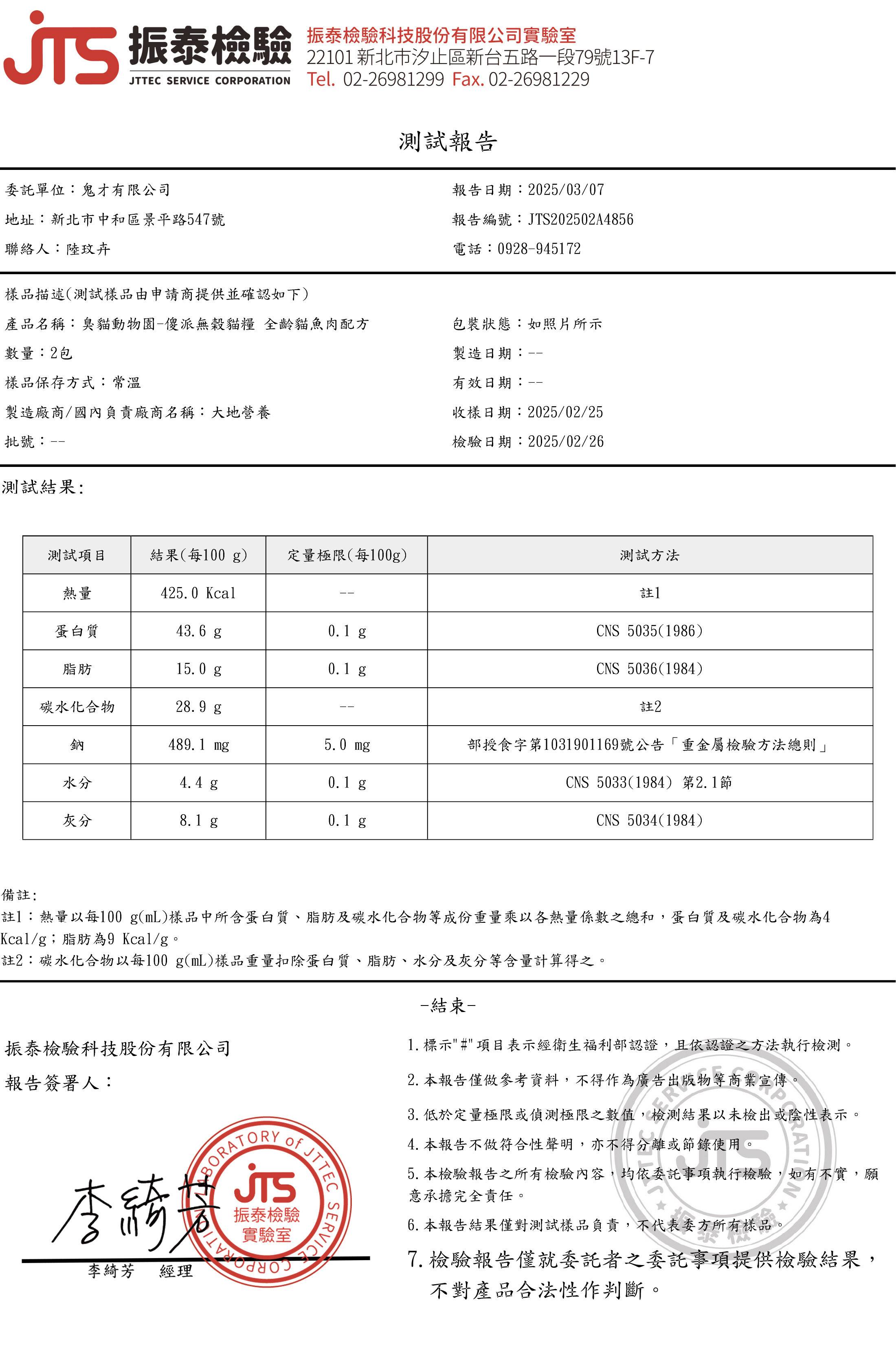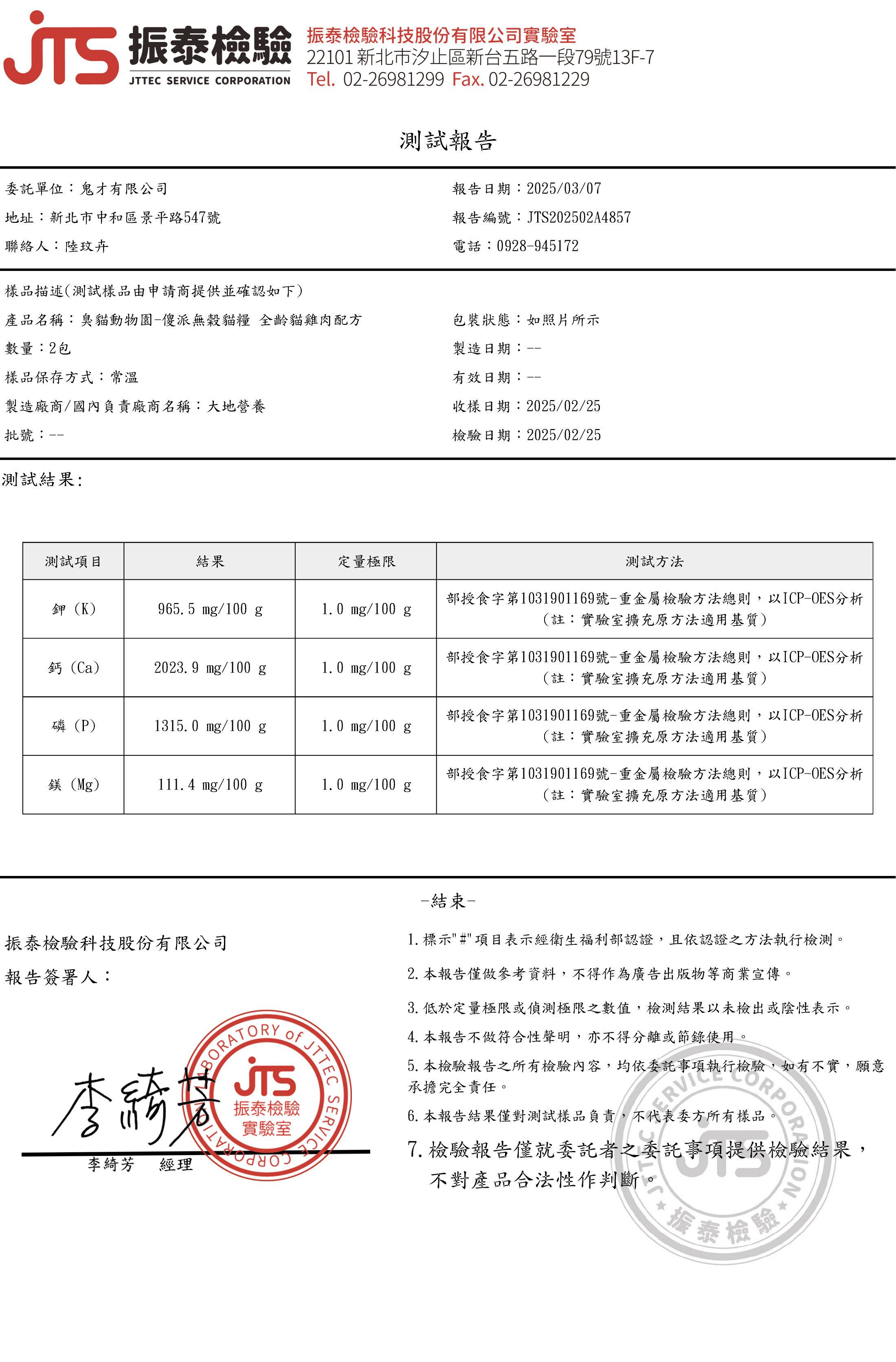 📍 傻派無穀貓飼料:重金屬安全性檢測