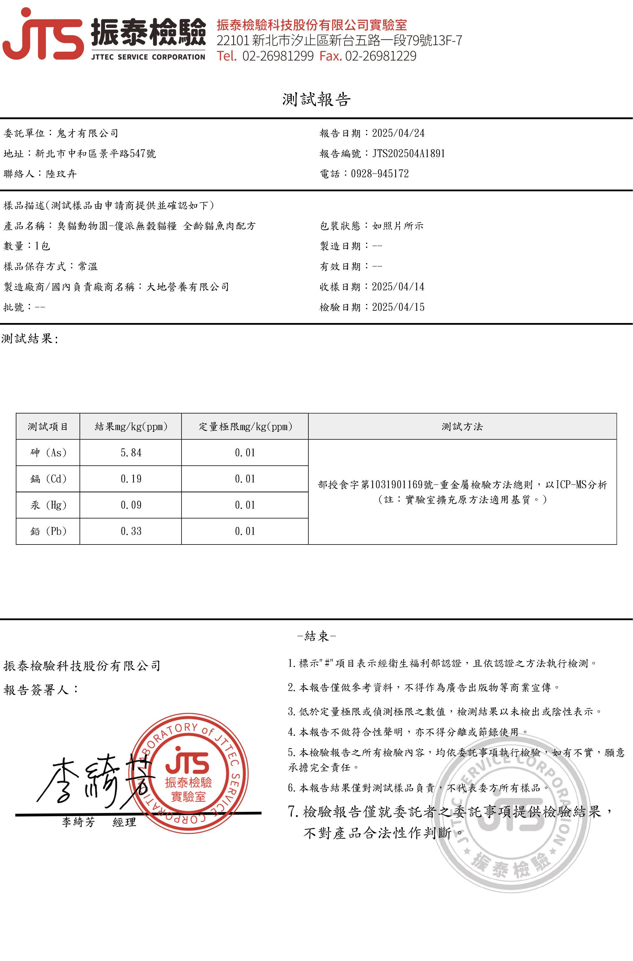 📍 傻派主食罐:重金屬(砷、鎘、汞、鉛)檢測