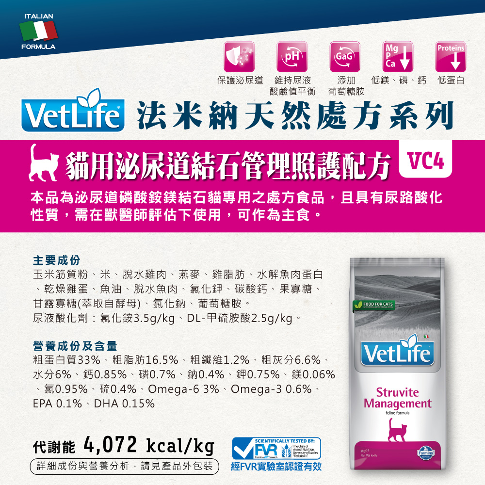 法米納 獸醫天然處方系列 VC4 貓用泌尿道結石管理照護配方