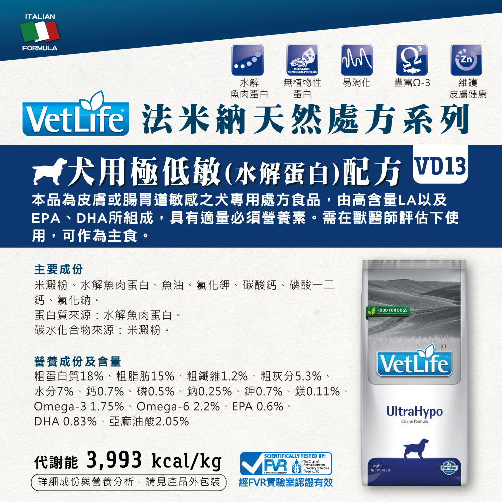 適用寵物種類:本品為犬專用之處方食品,需在獸醫師的評估下使用。可作為主食,建議於減少食物不耐、脫毛或皮膚疾病時支持皮毛功能,及食物排除試驗時使用,可在獸醫師評估後延長使用期。建議使用期:食物不良反應時,連續使用3-8週,若症狀消失,可持續長期使用以減少食物不耐;皮膚疾病或過度脫毛時,使用2個月以上,以提供皮膚功能的營養支持。