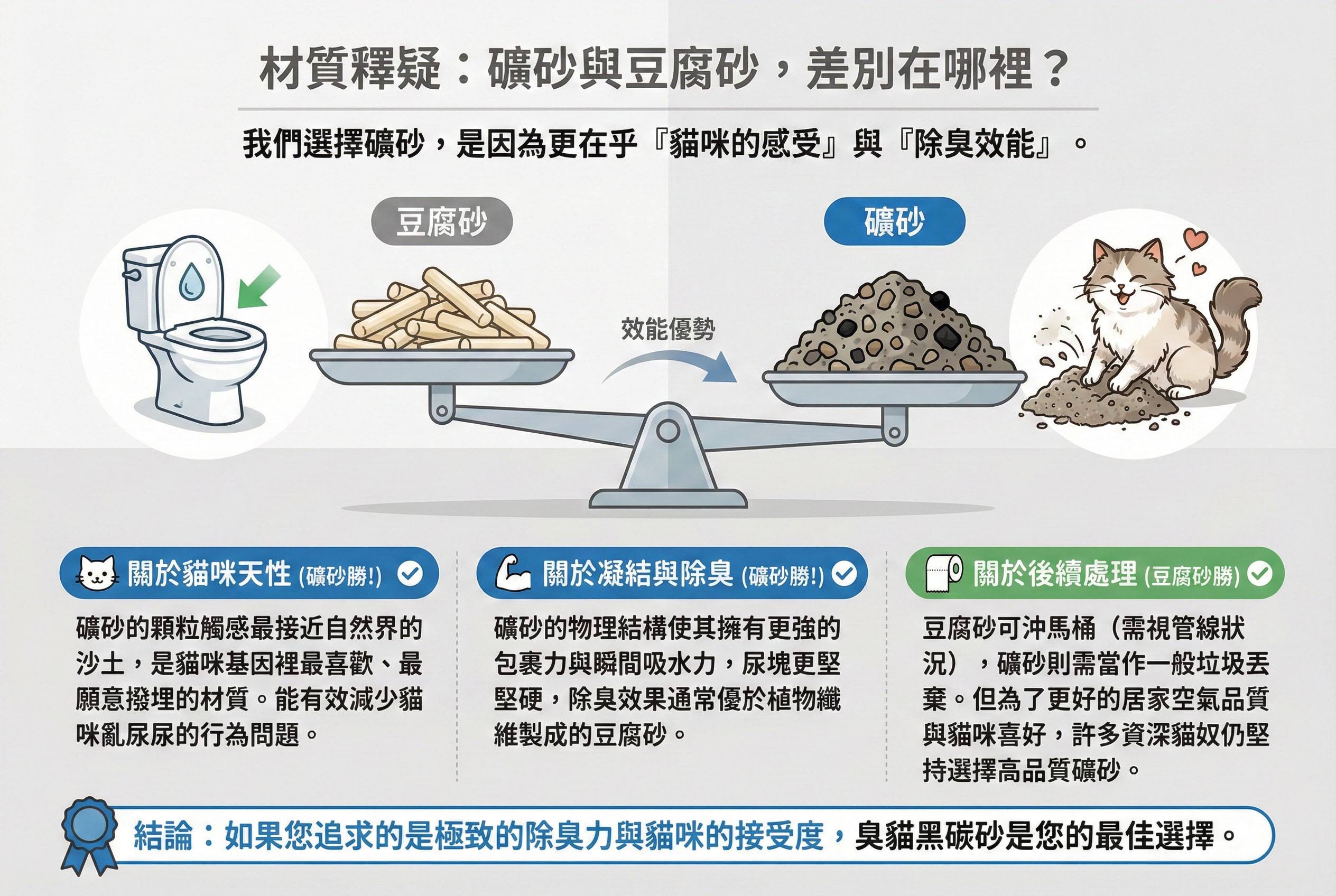 我們選擇礦砂,是因為更在乎「貓咪的感受」與「除臭效能」。