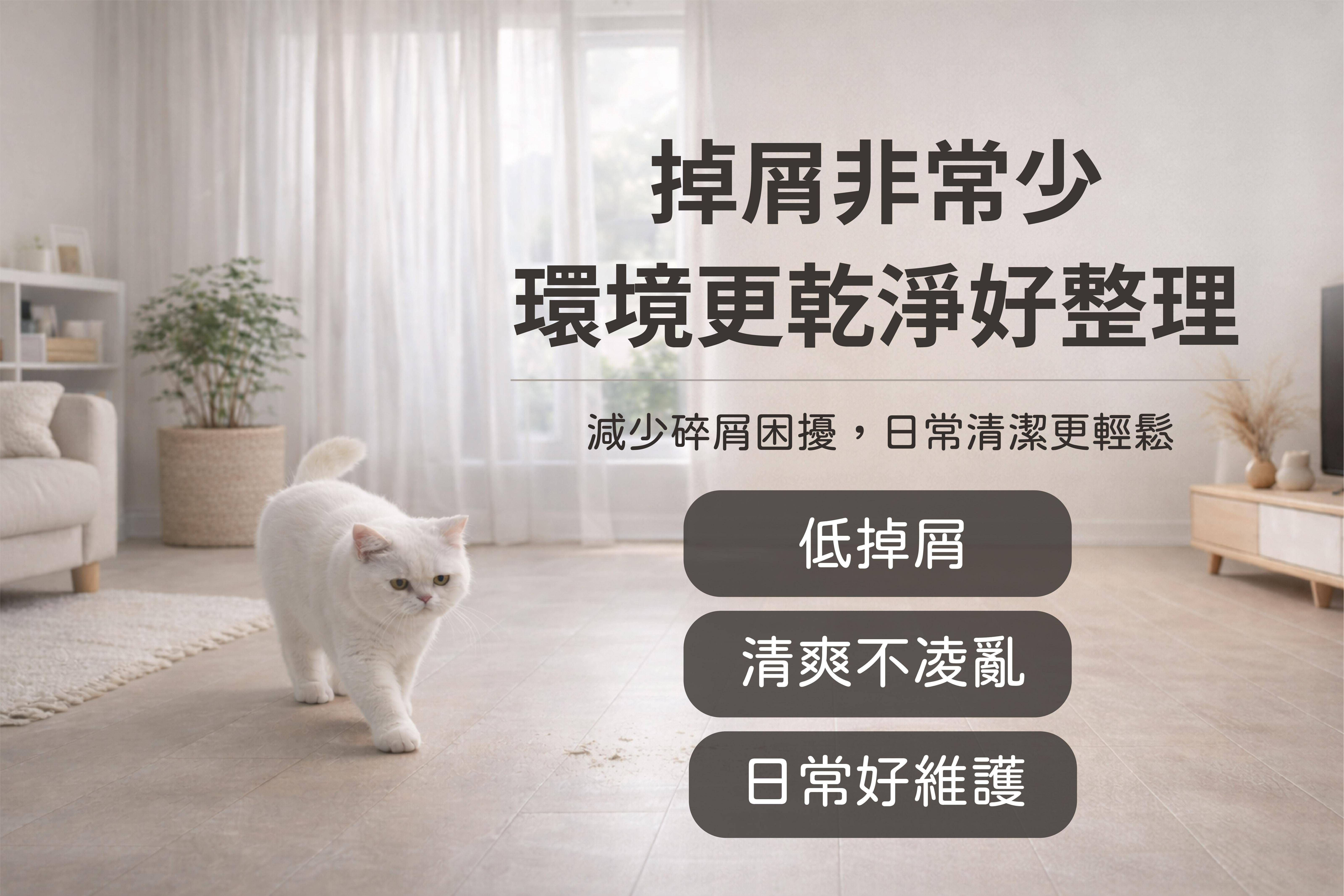 減少碎屑困擾,日常清潔更輕鬆。低掉屑、清爽不凌亂、日常好維護。