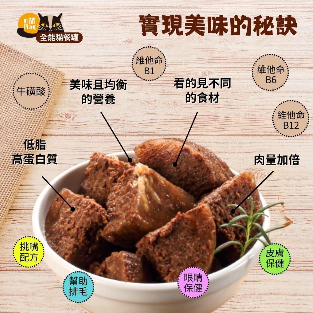 成份:鮪魚紅肉、牛肉、水、凝膠、果寡糖、維他命B1、維他命B6、維他命B12、牛磺酸